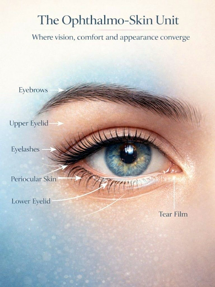 Στο πλαίσιο αυτό, αναδύεται τα τελευταία χρόνια η Δερμοφθαλμολογία® (Dermophthalmology), ένα ενοποιητικό επιστημονικό πεδίο που γεφυρώνει την Οφθαλμολογία με τη Δερματολογία, εστιάζοντας στη λειτουργική συνέχεια μεταξύ δέρματος, βλεφάρων και οφθαλμικής επιφάνειας. Η προσέγγιση αυτή δεν έρχεται να αντικαταστήσει την κλασική Οφθαλμολογία, αλλά να την εμπλουτίσει, φωτίζοντας έναν τομέα που ιστορικά υποεκτιμήθηκε: το Οφθαλμόδερμα (Ophthalmoderma)