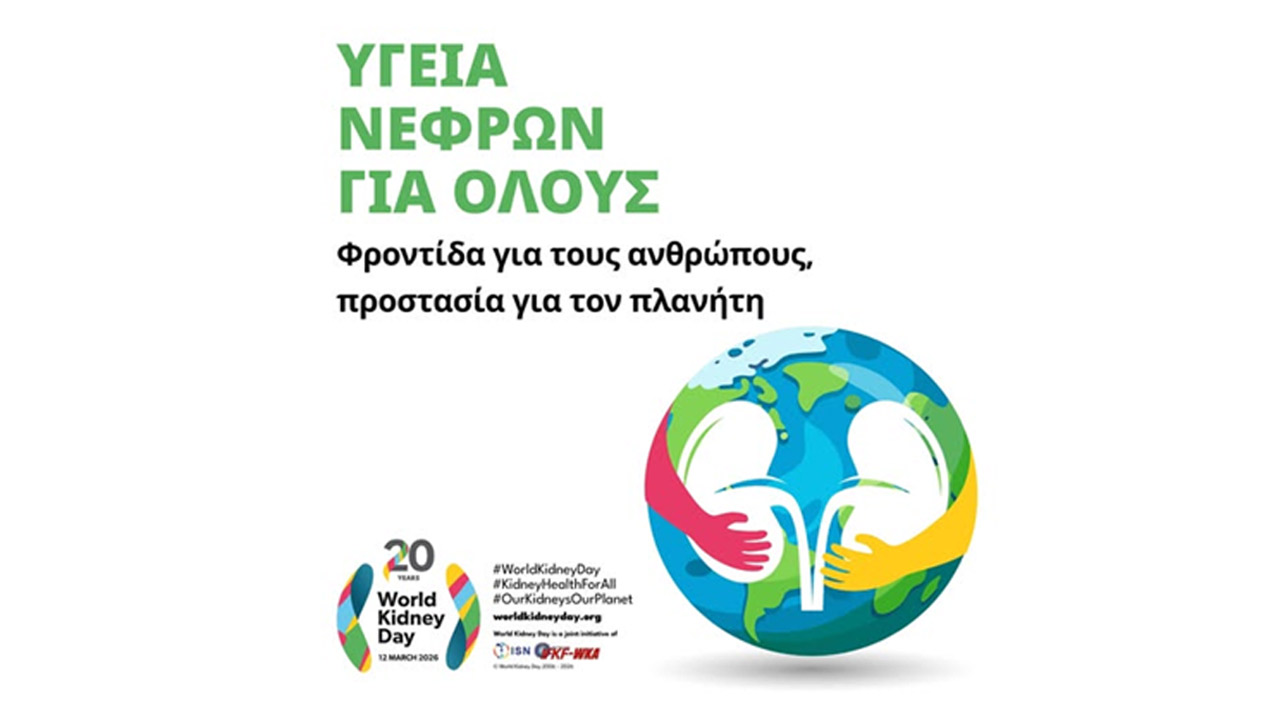 Η 12η Μαρτίου 2026 σηματοδοτεί την 20η επέτειο της Παγκόσμια Ημέρας Νεφρού, μιας διεθνούς πρωτοβουλίας που στοχεύει στην ενημέρωση και ευαισθητοποίηση του κοινού για τη σημασία της νεφρικής υγείας. Το φετινό μήνυμα της εκστρατείας, «Υγεία για Όλους – Φροντίδα για τον Άνθρωπο, Προστασία για τον Πλανήτη», αναδεικνύει την ανάγκη για ισότιμη πρόσβαση στη φροντίδα υγείας και παράλληλα την ανάγκη για βιώσιμα συστήματα υγείας που σέβονται το περιβάλλον1–3.