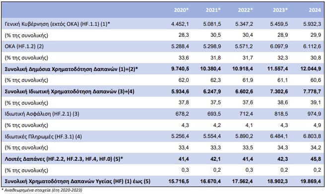 Η συμβολή του ιδιωτικού τομέα στη συνολική χρηματοδότηση για δαπάνες υγείας αυξήθηκε από 38,6% το έτος 2023 σε 39,1% το 2024.
