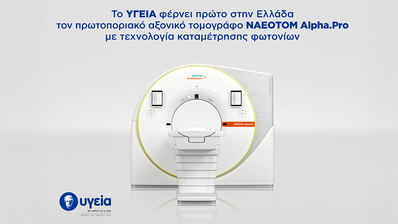 Με την εγκατάσταση του NAEOTOM Alpha.Pro, το ΥΓΕΙΑ επιβεβαιώνει τον σταθερό προσανατολισμό του στην αξιοποίηση καινοτόμων τεχνολογιών, με στόχο την παροχή υψηλού επιπέδου διαγνωστικών υπηρεσιών προς όφελος των ασθενών.