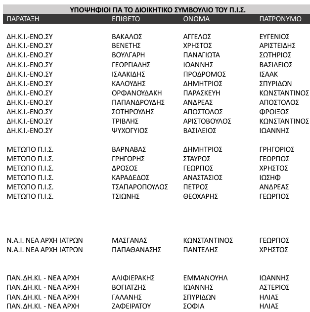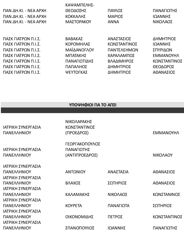 Υποψηφιότητα για το Ανώτατο Πειθαρχικό Συμβούλιο έθεσαν οι εξής Συνδυασμοί: