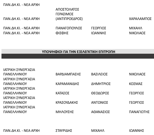 Υποψηφιότητα για την Εξελεγκτική Επιτροπή έθεσαν οι εξής Συνδυασμοί: