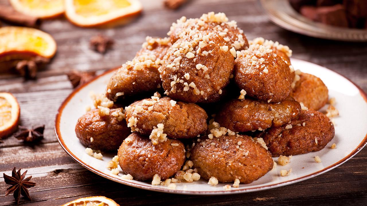 Με τη βοήθεια μίξερ αναμιγνύετε το λάδι με τη ζάχαρη, το ξύσμα, το χυμό, το σιμιγδάλι και τέλος, λίγο- λίγο το αλεύρι με τη σόδα. Πλάθουμε μικρά μελομακάρονα και τα βάζουμε στο φούρνο, αφού έχει φτάσει τους 200 οC. Όταν κρυώσουν τελείως τα περιχύνουμε με το σιρόπι ζεστό και πασπαλίζουμε με καρυδόψιχα.