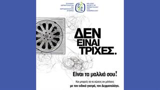 ''Δεν είναι τρίχες. Είναι τα μαλλιά σου!''Αυτό είναι το κεντρικό μήνυμα της καμπάνιας της Ελληνικής Δερματολογικής & Αφροδισιολογικής Εταιρείας για τις παθήσεις του τριχωτού της κεφαλής, καθώς η τριχόπτωση είναι ένα θέμα που αντιμετωπίζουν άνδρες αλλά και γυναίκες κάθε ηλικίας.