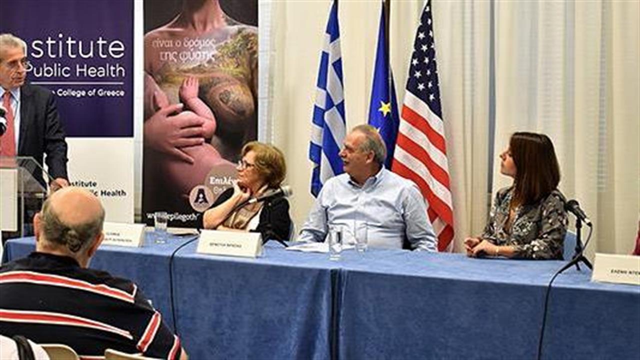 Το Ινστιτούτο Δημόσιας Υγείας του Αμερικανικού Κολλεγίου Ελλάδος σε συνεργασία με το Ινστιτούτο Υγείας του Παιδιού της Διεύθυνσης Αναπτυξιακής και Κοινωνικής Παιδιατρικής και το πρόγραμμα «ΑΛΚΥΟΝΗ», αναδεικνύει το πολύ σημαντικό θέμα του Μητρικού Θηλασμού, για την υγεία του παιδιού και της μητέρας, διοργανώνοντας ειδική εκδήλωση με θέμα «Ο Μητρικός Θηλασμός στην Ελλάδα: Παρελθόν, Παρόν και Στόχοι». Η εκδήλωση πραγματοποιήθηκε στο πλαίσιο της έναρξης της εβδομάδας που αφιερώνεται κάθε χρόνο στην Ελλάδα για ενημέρωση και ευαισθητοποίηση σχετικά με τον Μητρικό Θηλασμό, 1-7 Νοεμβρίου 2018.