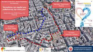 Μια τέτοια πρωτοβουλία αποτελεί, με αφορμή τις εργασίες του Ευρωπαϊκού Συνεδρίου Καρδιακής Ανεπάρκειας που πραγματοποιείται στην Αθήνα, η διοργάνωση του Περιπατητικού Γύρου «Hot Walk 2019» στην Αθήνα, σε συνεργασία της ΕΚΕ και της Ένωσης Καρδιακής Ανεπάρκειας της Ευρωπαϊκής Καρδιολογικής Εταιρείας.