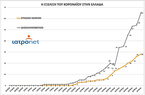 Το καθημερινό γράφημα με την πορεία της επιδημίας στη χώρα μας, μπορείτε να το παρακολουθείτε εδώ.