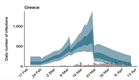 Η επίδραση των περιοριστικών μέτρων στον έλεγχο της επιδημίας του κορωνοϊού στην Ελλάδα, αποτυπώνεται σε ανάλυση του βρετανικού Imperial College.