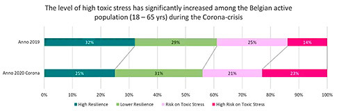Λίγο πριν την απομόνωση, πραγματοποιήθηκε μια έρευνα αναφοράς σε ένα αντιπροσωπευτικό δείγμα του βέλγικου πληθυσμού. Στην έρευνα αυτή, διαπιστώθηκε ότι το 32% του πληθυσμού θα μπορούσε να χαρακτηριστεί ως εξαιρετικά ανθεκτικό ("πράσινο"). Μόνο το 15% του πληθυσμού έδειξε τοξικά επίπεδα στρες ("κόκκινο").