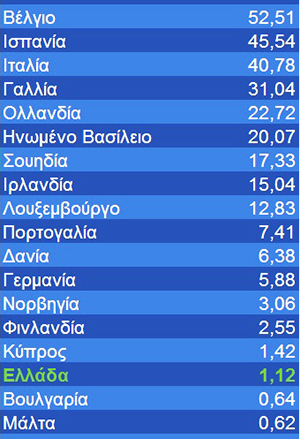 Όπως προκύπτει από τον σχετικό πίνακα, η χώρα μας έχει αναλογικά απείρως λιγότερους θανάτους από όλες τις χώρες του ευρωπαϊκού Βορρά και του ευρωπαϊκού Νότου.