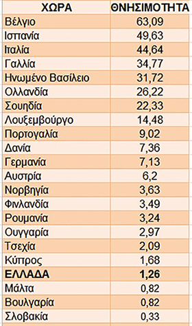 Σύμφωνα με σημερινά στοιχεία του Ευρωπαϊκού Οργανισμού Νοσημάτων (ECDC), η Ελλάδα έχει τους λιγότερους θανάτους από την CoViD-19 ανά 100.000 πληθυσμού, με εξαίρεση τη Μάλτα, τη Βουλγαρία και τη Σλοβακία (πίνακας κάτω).