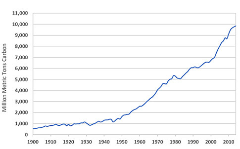 Παγκόσμιες εκπομπές άνθρακα από ορυκτά καύσιμα 1900-2010
