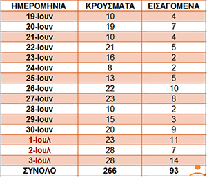 Ενδεικτικό είναι και το στοιχείο πως 280 από τα κρούσματα χαρακτηρίζονται ως κρούσματα "χωρίς μόνιμη κατοικία στην Ελλάδα". Στις 15 Ιουνίου, τα κρούσματα αυτά ήταν 43 λιγότερα, δηλαδή 237.