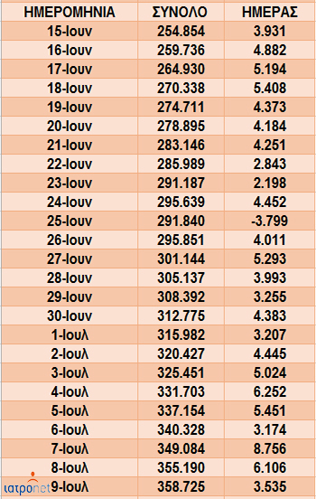 Αν και το τελευταίο διάστημα παρατηρείται μεγαλύτερη ημερήσια παραγωγή, τις περισσότερες μέρες ο αριθμός τους βρίσκεται πιο κοντά στις 3.000 έως 4.000, παρά στις 5.000 με 6.000, ενώ μόνο μία φορά τις τελευταίες 25 μέρες ξεπέρασε τις 8.000 (στις 7 Ιουλίου).
