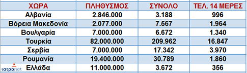 Στο διάστημα αυτό, στη Βόρεια Μακεδονία έχουν καταγραφεί το ένα στα τέσσερα κρούσματα, στη Βουλγαρία το ένα στα πέντε και στη Σερβία ένα στα τέσσερα.