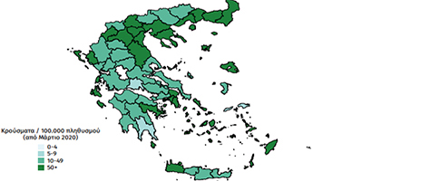 - 4 στην Π.Ε. Σερρών, εκ των οποίων 3 συνδέονται με επαφή με γνωστό επιβεβαιωμένο κρούσμα.