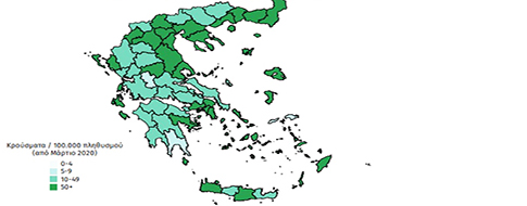 - 10 στην Π.Ε. Πέλλας, εκ των οποίων 6 συνδέονται με συρροή, ενώ 1 αναφέρει πρόσφατο ταξίδι στο εσωτερικό της χώρας.