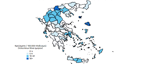 Χάρτης με την επίπτωση των τελευταίων 10 ημερών
