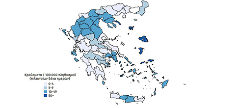 210 αφορούν την Αττική (174 χθες) - Τα 6 συνδέονται με γνωστές συρροές, ενώ 10 αναφέρουν πρόσφατο ταξίδι στο εσωτερικό της χώρας.