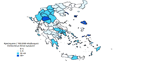 Χάρτης με την επίπτωση των τελευταίων 10 ημερών