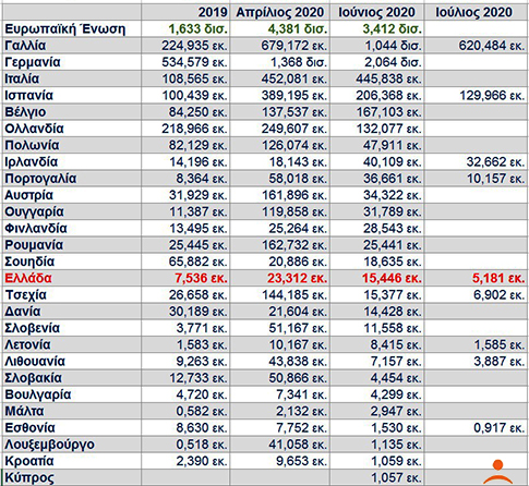 Περισσότερο από 16 φορές υψηλότερο είναι το ποσό στην Ιταλία (1,75 δισ. ευρώ έναντι 108,56 εκατομμυρίων) και σχεδόν 13 φορές υψηλότερο στην Ισπανία (1,27 δισ. ευρώ, έναντι 100,43 εκατομμυρίων).