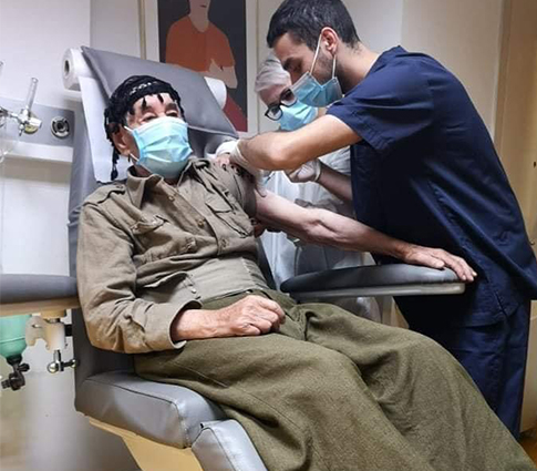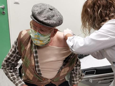Ο πρώτος υπερήλικας που εμβολιάστηκε κατά της CoViD-19, στο πλαίσιο της δεύτερης φάσης, είναι ο 91χρονος κ. Χρήστος (φωτογραφία πάνω). Μαθημένος στα δύσκολα και χωρίς φόβο για τον χιονιά, μετέβη το πρωί του Σαββάτου στο νοσοκομείο της Βέροιας, όπου τού χορηγήθηκε το εμβόλιο.