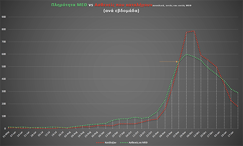Σύμφωνα με τον ίδιο, από την εξέλιξη της γραφικής παράστασης επαληθεύεται σήμερα ότι οι περισσότεροι θάνατοι το διάστημα 15 Νοεμβρίου - 15 Δεκεμβρίου συνέβησαν εκτός ΜΕΘ ακριβώς επειδή δεν υπήρχαν διαθέσιμες ΜΕΘ. Είναι προφανές ότι όσο υπάρχει προσβασιμότητα σε ΜΕΘ οι θάνατοι είναι πολύ λιγότεροι, σημειώνει.