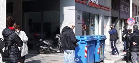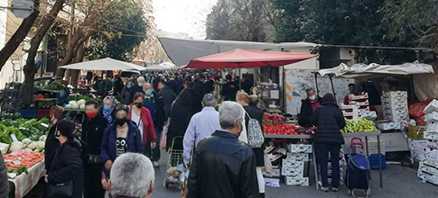 Στις συνοικίες της πόλης σχηματίστηκαν ουρές έξω από τα σούπερ μάρκετ, τα κρεοπωλεία, τις εταιρίες ταχυμεταφορών, ενώ πολύς ήταν ο κόσμος στη σαββατιάτικη λαϊκή αγορά της 25ης Μαρτίου, η οποία δούλεψε κανονικά σήμερα και θα ανασταλεί η λειτουργία της τα επόμενα Σαββατοκύριακα.