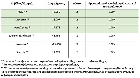Αυτά τα εμβόλια είναι 100% αποτελεσματικά όσον αφορά την προστασία που μας παρέχουν από την νοσηλεία εάν κολλήσουμε (το επικρατούν στέλεχος στην Ευρώπη ή την παραλλαγή που κυκλοφορεί κυρίως στην Αγγλία) αφού εμβολιαστούμε.