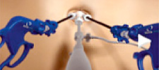 Παράλληλα, μειώνεται η καταπόνηση του χειρουργού και του εξασφαλίζει καλύτερο έλεγχο των εργαλείων’, εξηγεί ο κ. Χανδακάς.