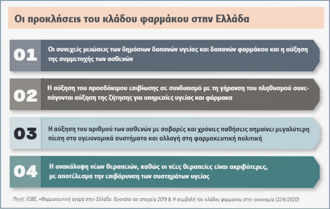 Στο ίδιο μήκος κύματος κινούνται και οι προτάσεις της ελληνικής φαρμακοβιομηχανίας όπως εκφράζονται από την Πανελλήνια Ένωση Φαρμακοβιομηχανίας (ΠΕΦ). Πρόσφατα και αυτή εξέφρασε την έντονη δυσαρέσκειά της για την υποχρηματοδότηση της δημόσιας φαρμακευτικής δαπάνης, η οποία οδηγεί σε μαρασμό την ελληνική παραγωγική φαρμακοβιομηχανία.