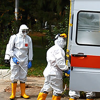 Ατομικά μέτρα προστασίας υγειονομικού προσωπικού ΕΚΑΒ - Διπλή προστασία προσώπου και μάσκα με φίλτρο αναπνοής -μεταφορά με ΕΚΑΒ.