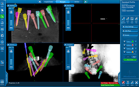 Τα τελευταία χρόνια, ξεκινώντας από τις ΗΠΑ, εξελίχθηκε και εφαρμόστηκε στη χειρουργική της σπονδυλικής στήλης το σύστημα της χειρουργικής πλοήγησης το οποίο επιτρέπει στον χειρουργό να παρακολουθεί την τοποθέτηση των εμφυτευμάτων του σε πραγματικό χρόνο (real time) με την ακρίβεια αξονικού τομογράφου. Το σύστημα αυτό μπορεί να παρέχει στο χειρουργό τη μέγιστη ακρίβεια στον εντοπισμό των ευαίσθητων νευρικών στοιχείων ώστε να τα προστατεύει κατά τη διάρκεια του χειρουργείου. Η ακρίβεια αυτή εκμηδενίζει την πιθανότητα ιατρικού λάθους και την πρόκληση μόνιμων νευρολογικών βλαβών όπως η παράλυση.