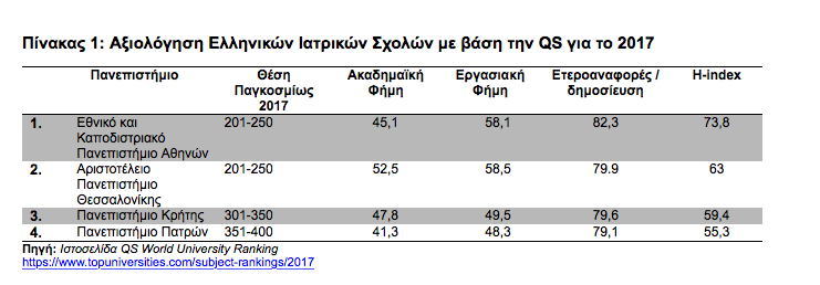 Πολύ υψηλή θέση καταλαμβάνει και φέτος η Ιατρική Σχολή του Εθνικού Καποδιστριακού Πανεπιστημίου της Αθήνας (ΕΚΠΑ) στην Κατάταξη Βασικών και Εξειδικευμένων Επιστημονικών Πεδίων της QS (Quacquarelli Symonds).