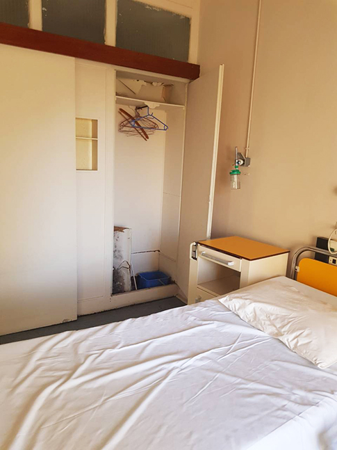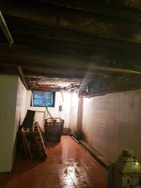 Το δείγμα προερχόταν από συγκεντρωμένα ύδατα στην αποθήκη ξηράς τροφής που βρίσκεται στο πρώτο υπόγειο του κτιρίου Α΄. Τα ύδατα διέρρευσαν στην αποθήκη από το δάπεδο του γειτονικού ηλεκτρικού υποσταθμού.