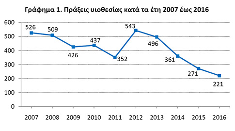 Το 2016, έγιναν 50 υιοθεσίες λιγότερες από το 2015 (271), με τη μεγαλύτερη μείωση - σε απόλυτες τιμές – να παρατηρείται στην Αττική (33,5%).