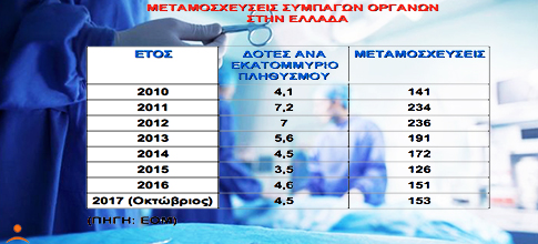 Τον περασμένο Οκτώβριο, 1.219 Έλληνες βρίσκονταν στη λίστα αναμονής για νεφρικό μόσχευμα, 158 περίμεναν για ηπατικό μόσχευμα και 36 για καρδιακό.