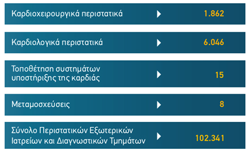 Η μέση διάρκεια νοσηλείας για τα καρδιολογικά περιστατικά είναι μόλις 2,34 μέρες και για τα καρδιοχειρουργικά περιστατικά 7,5 μέρες.
