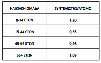 Οι μισθοί θα ορίζονται πλέον με βάση τον πληθυσμό ευθύνης κάθε γιατρού και συντελεστή με βάση την ηλικία των ασφαλισμένων που θα καλύπτουν, όπως δείχνει ο παρακάτω πίνακας: