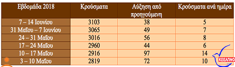 Την προηγούμενη εβδομάδα, είχαν καταγραφεί 49 νέα κρούσματα, με συνολικό αριθμό τα 3.065 και τέσσερις θανάτους.