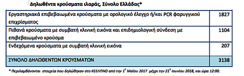 Την τελευταία εβδομάδα, νόσησαν 35 ακόμη άνθρωποι, με τον συνολικό αριθμό να έχει ανέλθει στους 3.138.