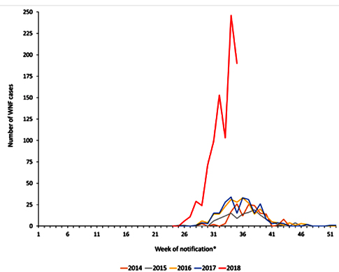 Ενδεικτικό της εικόνας είναι ότι το προηγούμενο έτος που είχαν επίσης καταγραφεί πολλά κρούσματα ήταν το 2010 (393 λοιμώξεις σε ανθρώπους). Μέχρι το τέλος της περασμένης εβδομάδας, τα κρούσματα στην Ευρωπαϊκή Ένωση και τις γειτονικές χώρες είχαν ήδη ξεπεράσει τα 975!