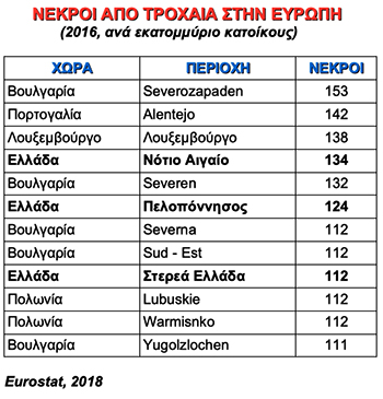 Σε μάστιγα εξελίσσονται για την Ελλάδα τα τροχαία δυστυχήματα. Η χώρα μας συμμετέχει με τρεις περιοχές στην πρώτη ευρωπαϊκή δεκάδα των θυμάτων.