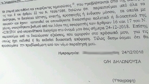 Όπως προκύπτει από το παρακάτω έγγραφο, καλούνται να δηλώσουν πως παραιτούνται από όλα τα νόμιμα δικαιώματά τους και πως δεν πρόκειται να τα διεκδικήσουν στο εξής!