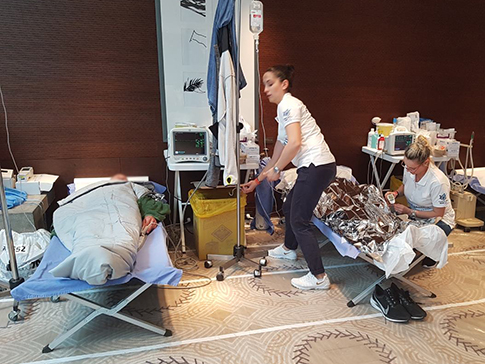 Γιατροί, νοσηλευτικό προσωπικό και διασώστες εργάσθηκαν αδιάκοπα από τις πρώτες πρωινές ώρες προκειμένου όλοι οι αθλητές να λάβουν εγκαίρως τις πρώτες βοήθειες.