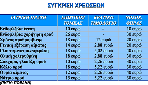 Από τον παρακάτω συγκριτικό πίνακα προκύπτουν οι σημαντικές αποκλίσεις στις χρεώσεις του νοσοκομείου Θήρας, ακόμη και από τον ιδιωτικό τομέα...