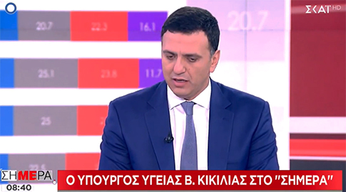 Τα παραπάνω ανέφερε το πρωί της Τετάρτης ο υπουργός Υγείας Βασίλης Κικίλιας, σε τηλεοπτική εκπομπή "Σκάι σήμερα".