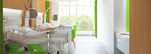 Δεν θα υπάρχουν παρά μόνο μονόκλινα και δίκλινα δωμάτια νοσηλείας, με ανεμπόδιστη θέα προς το δάσος, ενώ για τις αίθουσες χειρουργείων έχουν προβλεφθεί μεγάλα ανοίγματα, στραμμένα προς το πάρκο, επιτρέποντας τη διέλευση φυσικού φωτός.
