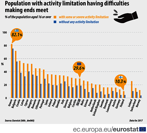 Όπως σχολιάζουν οι συντάκτες της έκθεσης της Eurostat, η επιβάρυνση του κόστους στέγασης είναι βαρύτερη για άτομα με αναπηρία.