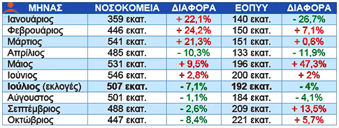 Όπως φαίνεται στον παρακάτω πίνακα, το δεκάμηνο Ιανουάριος - Οκτώβριος, τα δημόσια νοσοκομεία είχαν αύξηση 24,5% στις ληξιπρόθεσμες οφειλές και ο ΕΟΠΥΥ 57,85%.